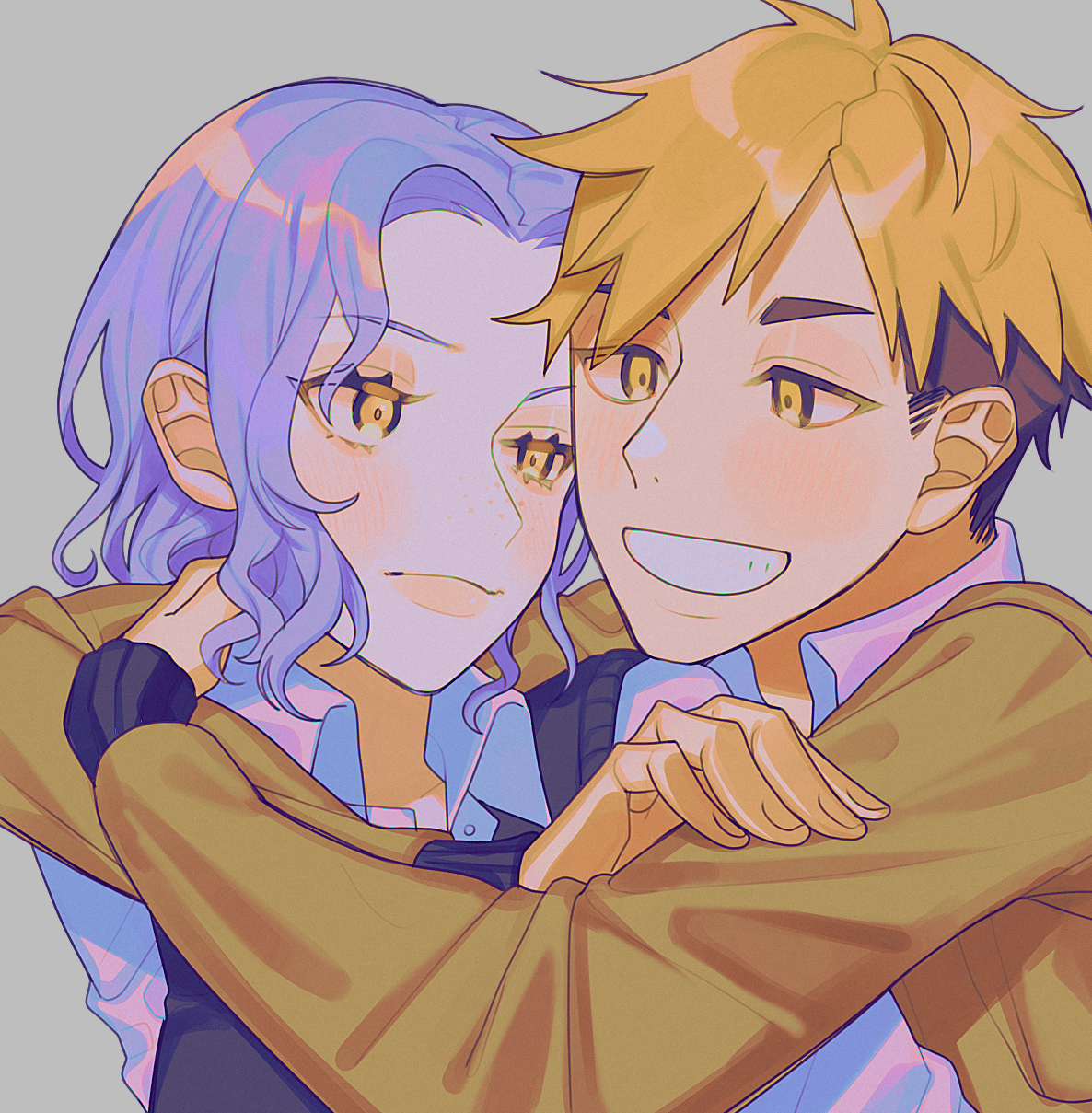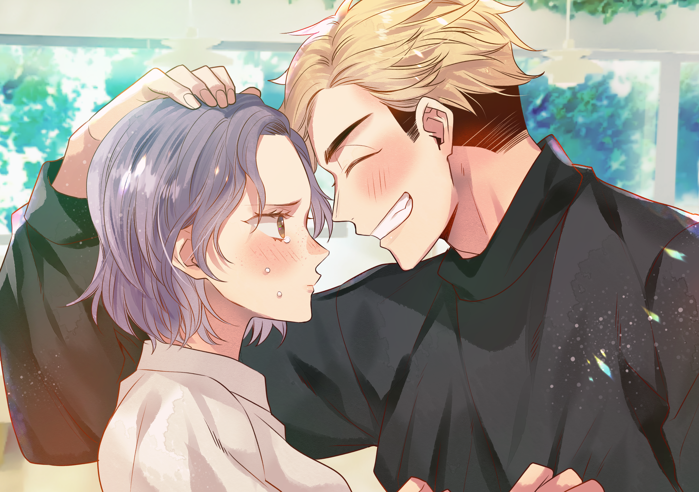 고교시절에 아무리 친했지만 사실상 사귀지는 않았던, 썸만 탔던 츠무와의 관계인지라 장난스럽게 안았지만 사실 안고 싶다는 사심... 이 들어간 모습이에요. 둘이 장난치다가 손장난을 말리던 중간에 안아버린 츠무, 라는 설정이랍니다. 이 뒤에는 황급히 놔주며 그러니까 장난치지 말라고! 라고 삐진 척하지만 얼굴은 다른 이유로 붉었겠죠. 서로 얼굴을 붉히고선 아무렇지도 않은 척 다시 다른 이야기를 할 것 같아요. 품에 안았을 때, 츠무는 두근거리는 심장소리를 들었을까요.